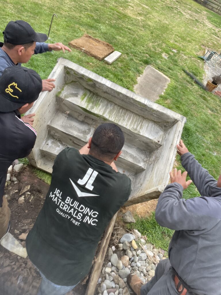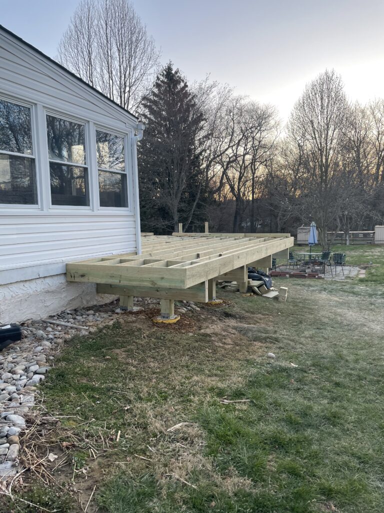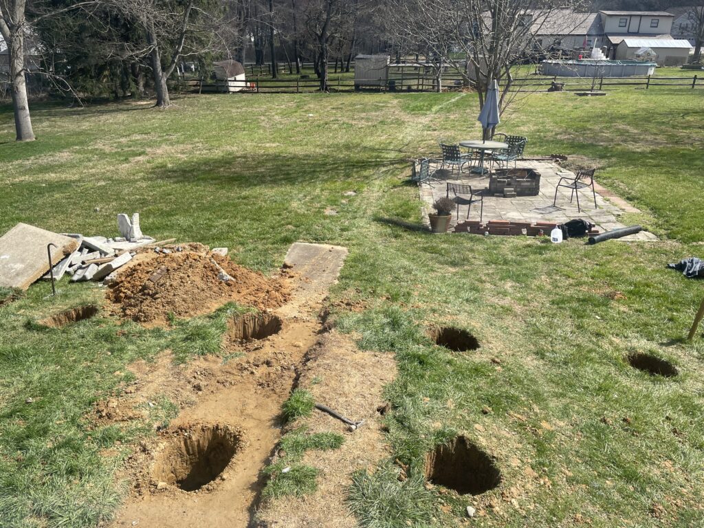 March 17th “J & V Patio” started, they moved and broke down the cement steps (they were not even attached to the house) and dug the holes for the footers (total of 14), now we have to wait for the inspectors to come out and measure.