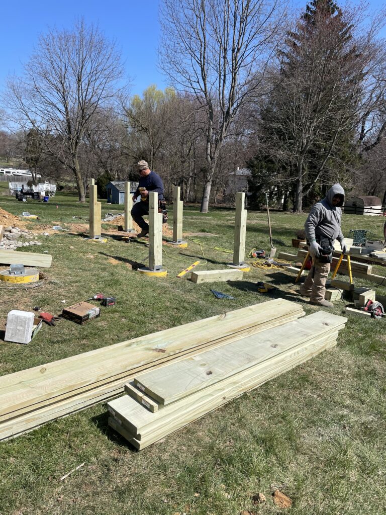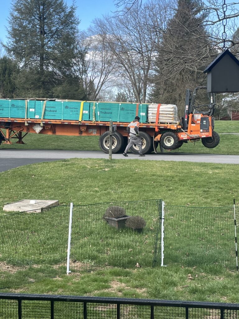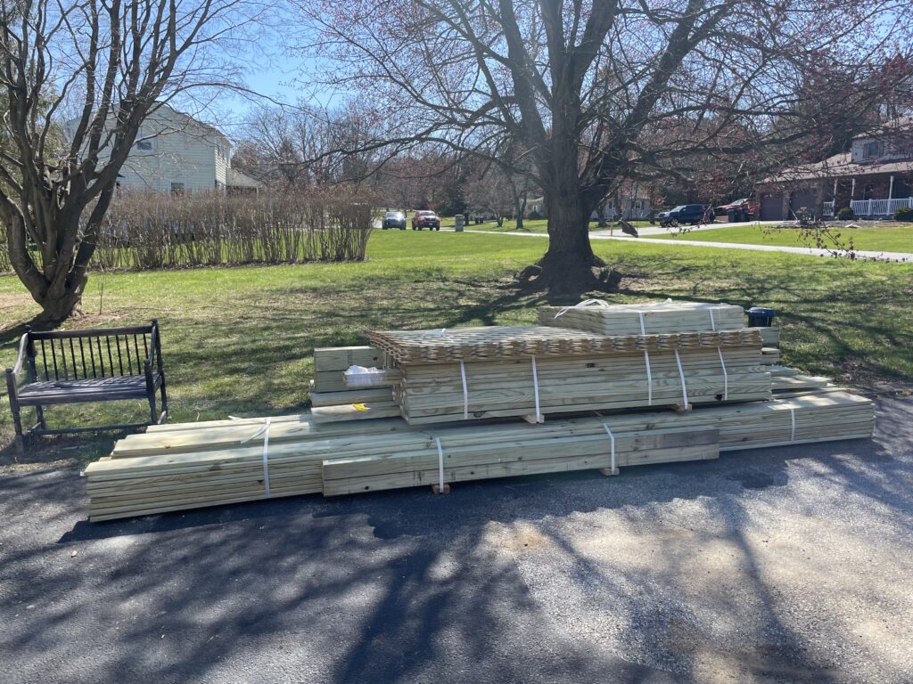 While we wait for the township, the deliveries start…wood, cement, lattice, and deck hardware