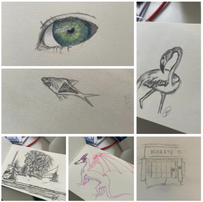 before we moved…maybe March 2023, I bought myself a small sketch book! I have done this off and on over the years and end up with a blank sketch book (that one of the kids end up getting)….but for some reason, this one was different, I started drawing again. Nothing serious, just few things here and there. Whatever inspired me…